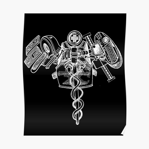Hand Drawn Bones Heart Medical Caduceus Poster By Griffsgraphix Redbubble